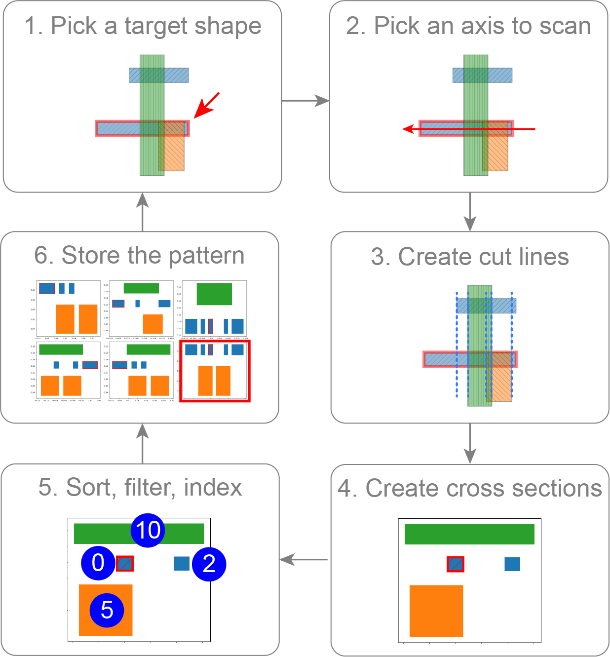 - 2.5D R/C extraction algorithm: From pattern extraction to netlist generation.